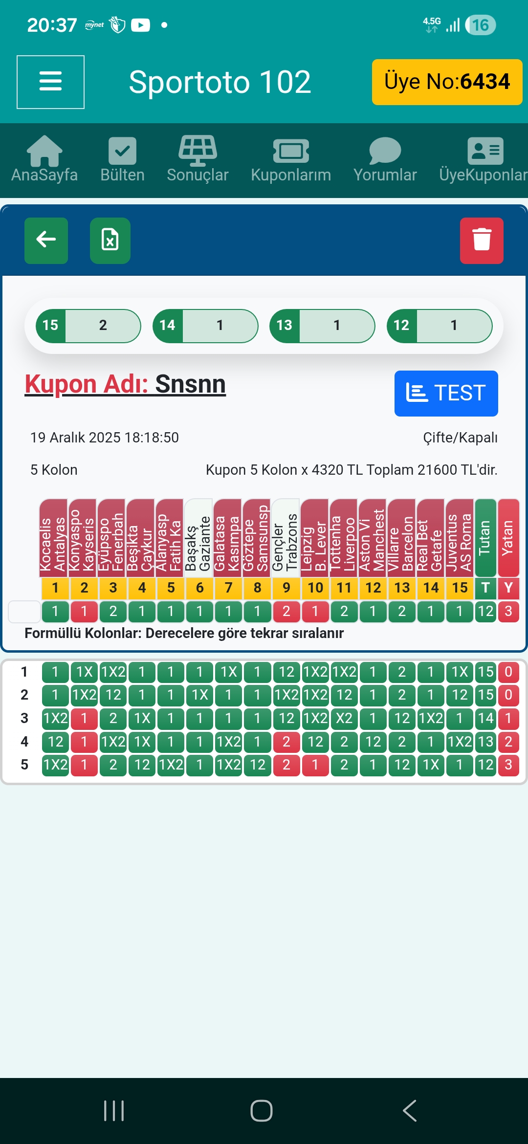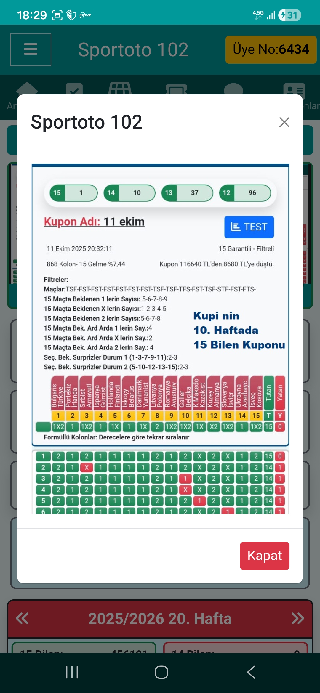 📢2.Bilgi: Otomatik oynadığınız kuponların kupon numarası YEŞİL, otomatik oynanmayan kuponlarınızın kupon numarası BEYAZ arkaplan rengine sahiptir.